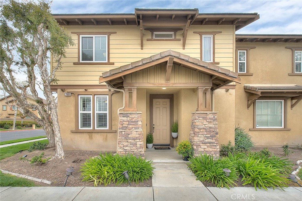 Picturesque College Park home, tastefully upgraded and move-in ready! 4 bedrooms, 2&1/2 bathrooms with a well thought out floor plan. The living room features abundant natural light, custom shutters, lovely neutral color palette, built-in entertainment center and inviting fireplace. The dining space is located right off the kitchen with additional custom shutters and a marvelous lighted chandelier. Kitchen is bright and airy with 2-toned neutral color cabinetry, stainless steel appliances, quartz countertop and striking subway tile backsplash. Slider in the dining room leads to an outdoor patio area that echoes the resort lifestyle vibe of the community. All four bedrooms are nestled upstairs, with contemporary ceiling fans in each, and tastefully selected flooring. The primary bedroom boasts handsome engineered wood plank flooring, walk-in closet and chandelier light/fan. Primary on-suite bath has dual sink vanity and luxury soaking tub with separate, walk-in shower. Convenient upstairs laundry room boasts ample space and additional cabinets for storage. This corner-lot property has parking spaces in the very front of the home, as well as nearby. Finished 2-car attached garage with automatic opener offers easy access and upgraded epoxy flooring. Resort Style community amenities include a clubhouse with two swimming pools, spa, kids splash pad, fitness center and recreation room. A neighborhood park is within walking distance. This exceptional property is ready for you to enjoy!